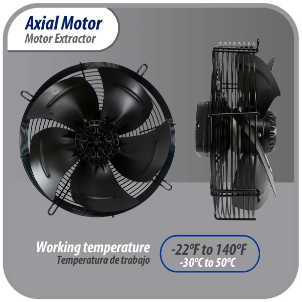 Appli Parts AXF-500-1 19-3/4 in Axial Fan Motor Guard Mounted Fan Blade 220V, 1 Ph, 50-60 Hz, 500W, 1450 rpm, Universal replacement for Cold Room Evaporators, Condensing Units, Work Temp -22F to 140F