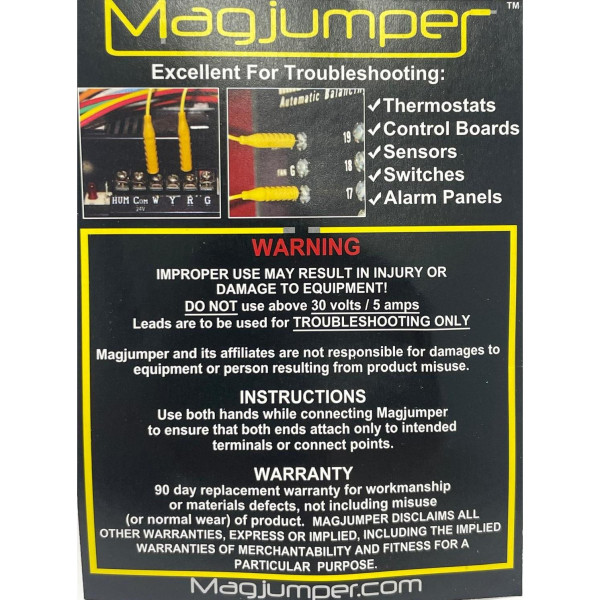 Supco MAG1YL Appliance Magjumper 30 Vac Magnetic Test Leads