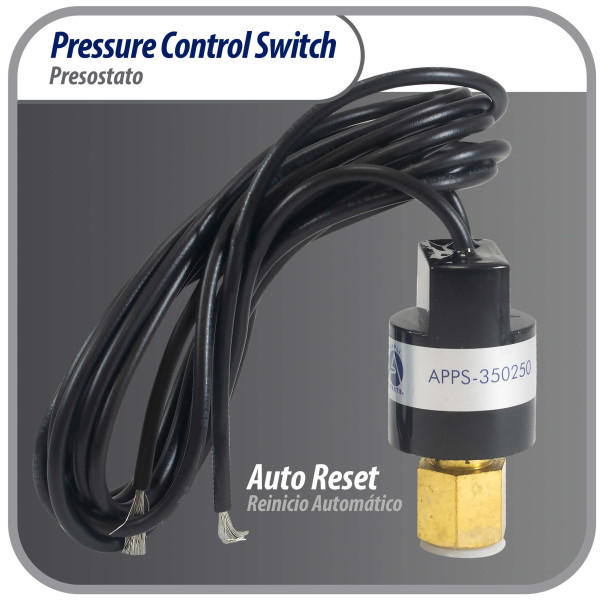 - Specs: Single Pole Single Throw, Auto reset, Opens at 350 psi Closes at 250 psi, 1/4 in female connection with 39-3/8 cable. Tamper Safe factory sealed construction