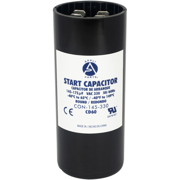 Appli Parts CON-145-330 Capacitor de Arranque 145-175 MFD (microfaradios) uF, 330 VAC. Universal para Motores Electricos, condensador de arranque de 3.7 cm de Diametro, 8.6 cm de Alto