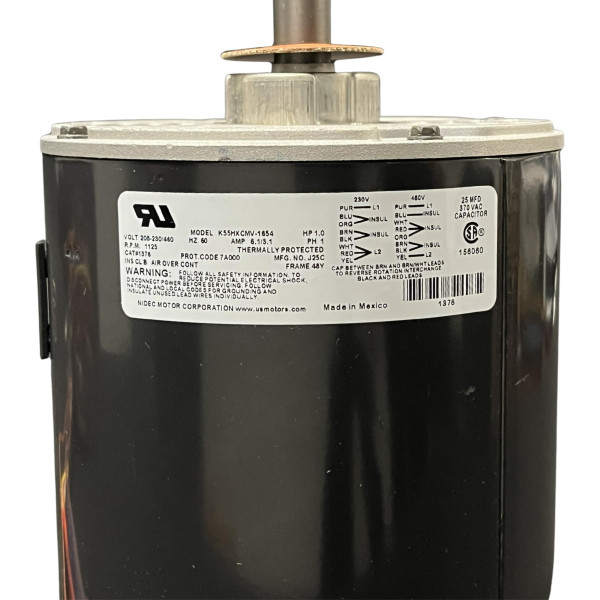 US Motors 1 hp 1125 rpm, 6 polos, 1 eje, 1 velocidad, 5.6 diametro, CCW, Lead End, Reversible, 208-230 V/460 V, 60 hz, 1 ph, 25 mfd/370 VAC Capacitor 1376 K055CMV1654015B