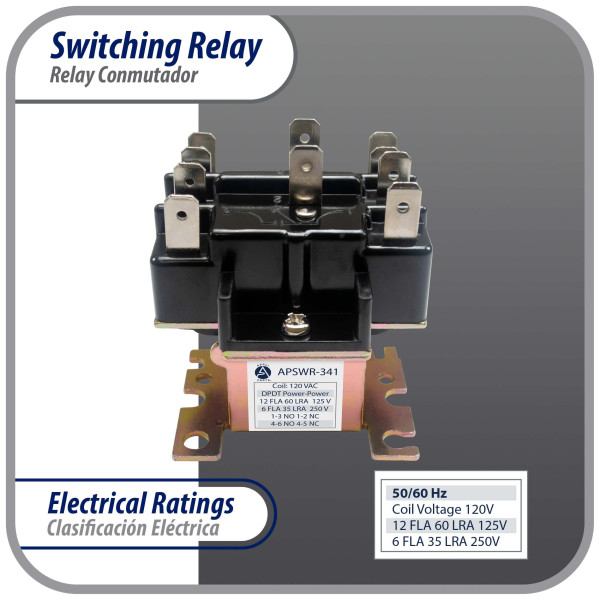 Appli Parts APSWR-341 90-341, 110 VAC, General Purpose Switching Relay, DPDT, for HVAC applications and other general electrical installations, Replaces APSR-341