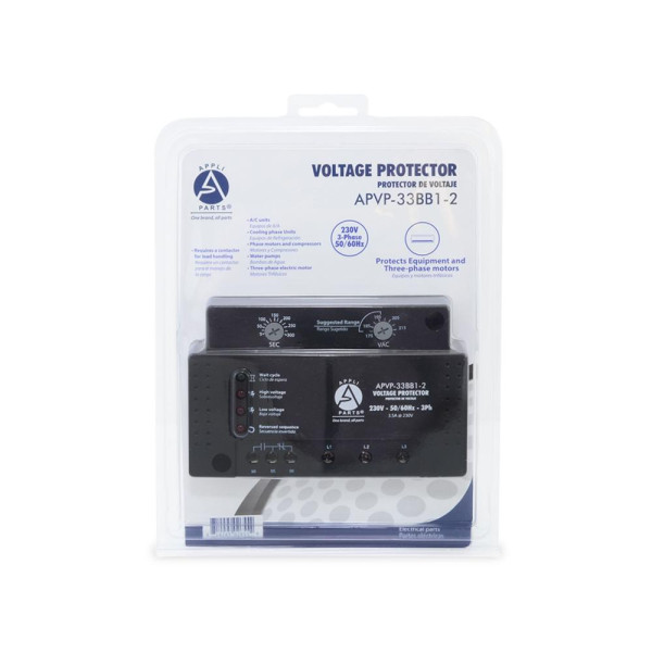Appli Parts APVP-33BB1-2 220V Voltage Surge Protector with Adjustable Range and Reconnecting Time, 50/60 Hz, 3 Ph, 3.5A, works with all electric appliances and units with rated electrical consumption