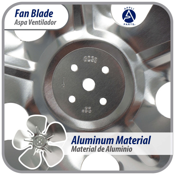 Appli Parts APFB-A09CCW Aluminum Fan Blade 9 in, 230 mm, CCW, 22 degrees, hubless 5 holes, 5 wings
