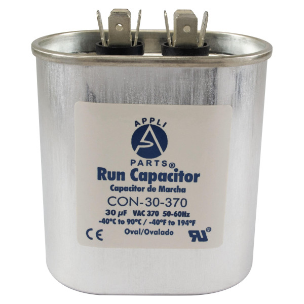 Appli Parts CON-30-370 Run Capacitor for ac 30 Mfd uF (microfarads) 370VAC CBB65 Oval Universal fit for hvac and other applications 2-7/8in Wide 1-7/8in Depth 3-1/4 in High in Wide