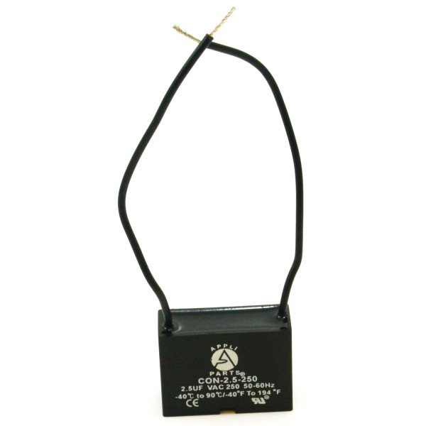 Appli Parts CAP-2.5-250-2C Fan Capacitor 2.5 mfd (microfarads) uf 250 VAC with 2 Wire Terminal Connections compatible with any brand with same capacitance 1-1/2in Width 5/8in Depth 1in Height