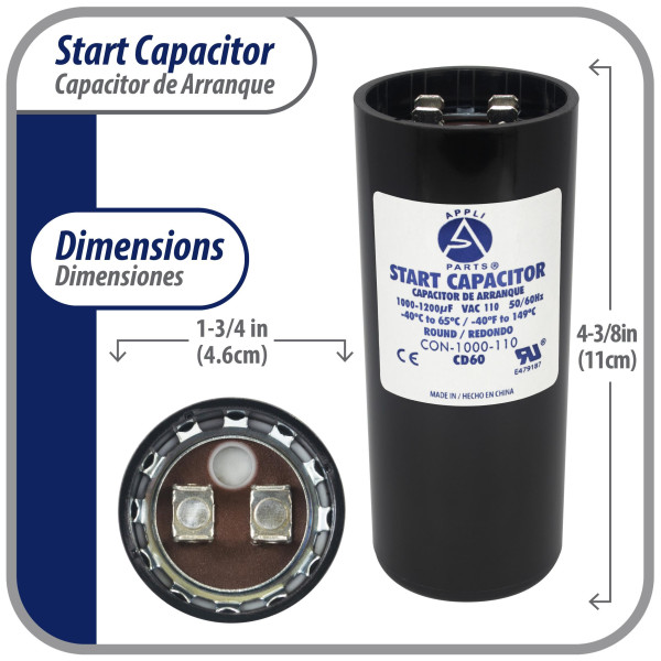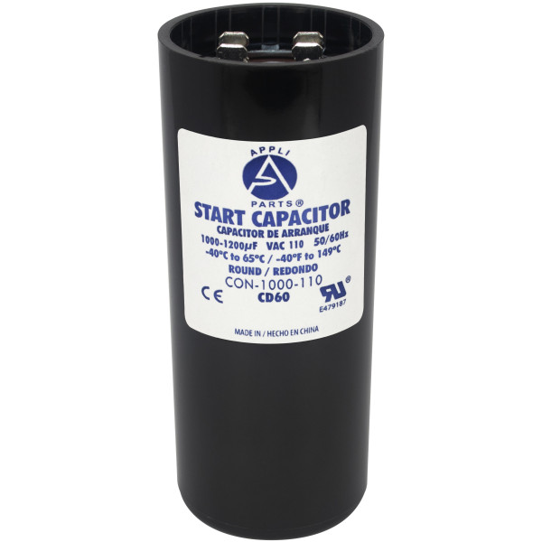 Appli Parts CON-1000-110 Motor Start Capacitor 1000-1200 MFD uF, 110-125 VAC. Universal for Electric Motor Applications, 1.75 in Wide, 4.38 in Height