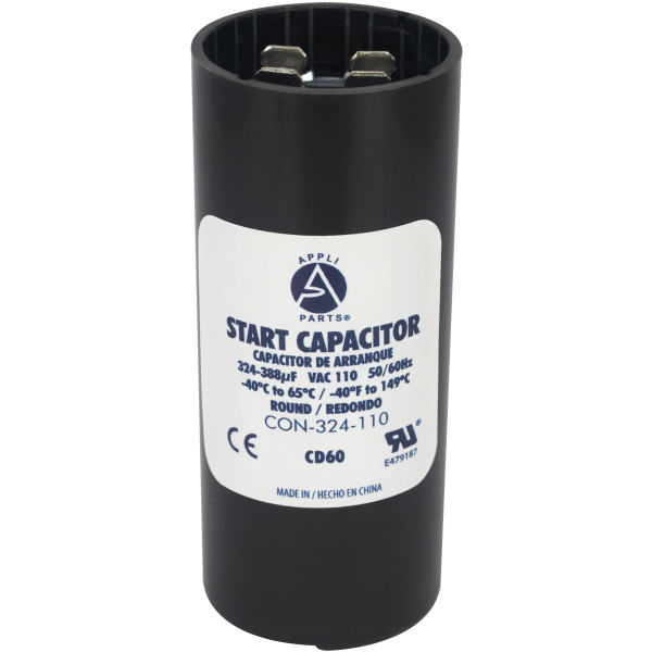 Appli Parts CON-324-110 Motor Start Capacitor 324-388 MFD uF, 110-125 VAC. Universal for Electric Motor Applications, 1.44 in Wide, 3.38 in Height