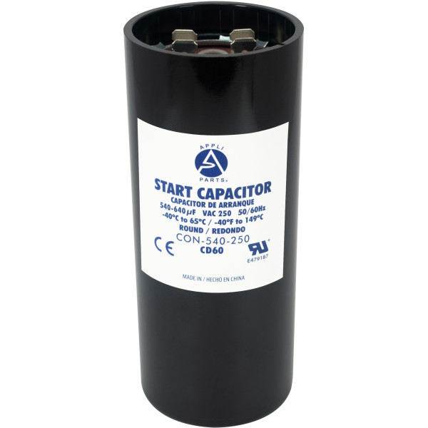 Appli Parts CON-540-250 Motor Start Capacitor 540-640 MFD uF, 250 VAC. Universal for Electric Motor Applications, 1.75 in Wide, 4.38 in Height