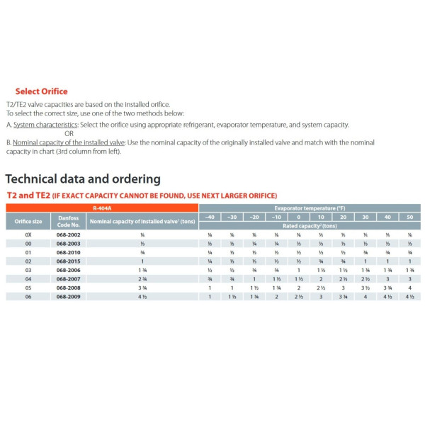 Danfoss 068Z3400 Thermostatic Expansion Valve – T2 for R404A and R507A