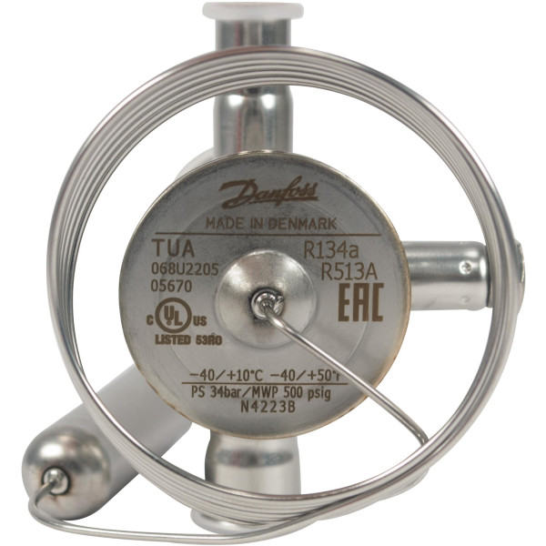 Danfoss 068U2205 1/8 - 2.5TR Expansion Valve Body, TUA, R134a, R513A, 3/8x1/2 in, Solder, ODF, Internally equalized, Single-flow, -40 to 50 F, Capacity determined by Orifice size Sold Separately