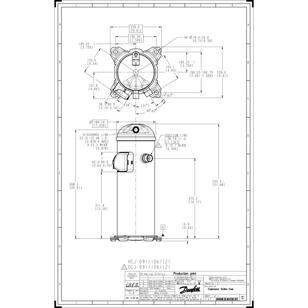 Danfoss DCJ121T4LC6 10 tons 121,000 btu/h R410A Scroll compressor for Air conditioning 380-415/3/50, 460/3/60 V/Ph/Hz Discharge 7/8 in, Suction 1-1/8 in, ODF, PVE Oil 121L5017, 121L5016