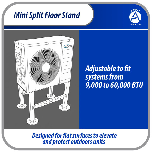 Appli Parts APAB-4440 Soporte de Montaje en Piso para Mini Split. Soporta 200 kg, Compatible desde 9000 a 60000 BTU, Incluye Gomas Antivibracion y Kit Completo de Instalacion. Extensible 56 a 100 cm