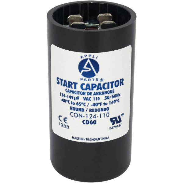 Appli Parts CON-124-110 Capacitor de Arranque 124-149 MFD (microfaradios) uF, 110-125 VAC. Universal para Motores Electricos, condensador de arranque de 3.7 cm de Diametro, 7 cm de Alto
