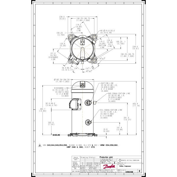 Danfoss HLH061T4LC8 5 tons 61.000 btu/h R410A Compressor Scroll para Aire Acondicionado 380-415/3/50, 460/3/60 V/Ph/Hz Descarga 1/2 in, Succion 7/8 in, ODF, PVE Oil, Tandem Listo, 121L2486, 121L8477