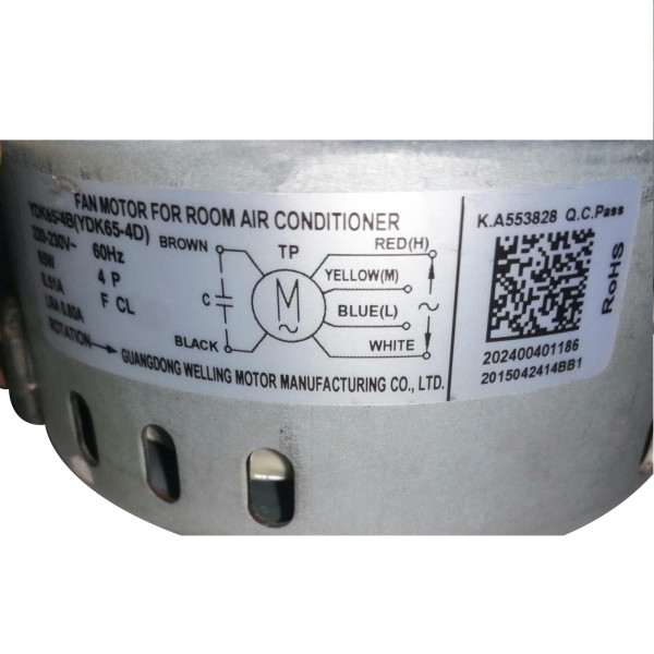 Motor Ventilador Unidad Interna Eje 4 in largo X 1/4 in YDK65-4B (Ydk65-4d) KT-65-4-9 RoHS 220-230v 65w 0.51a Ccwse 202400401186 / 11002012002595 11002012030949 Sirve: ecox EDDM030C16B EDDM036C16B