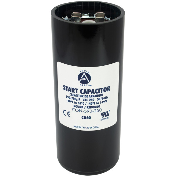 Appli Parts CON-590-250 Capacitor de Arranque 590-708 MFD (microfaradios) uF, 250 VAC. Universal para Motores Electricos, condensador de arranque de 4.6 cm de Diametro, 11 cm de Alto